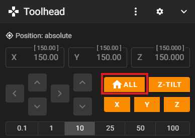 - Home all axes on the machine by clicking "HOME ALL"